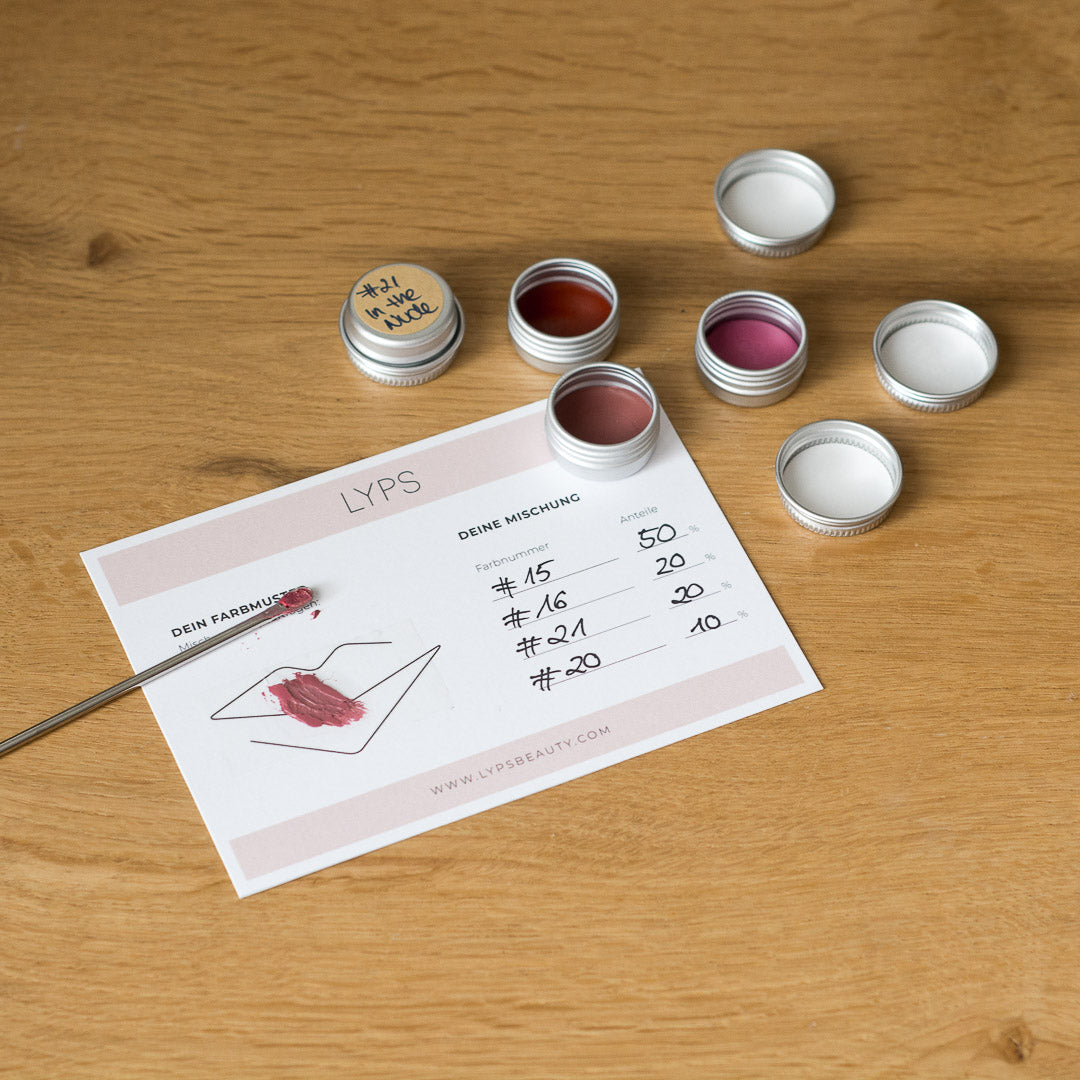 Studio-Termin vereinbarenNutze unseren Vor-Ort-Service, um Farben zu testen oder deine eigene zu kreieren! Vereinbare einen Termin in unserem Studio oder bei einem LYPSter in deiner Nähe (Liste unten). Gemeinsam mischen wir deinen perfekten Farbton, den du als handmade Lippenstift ab 37 € erhältst.